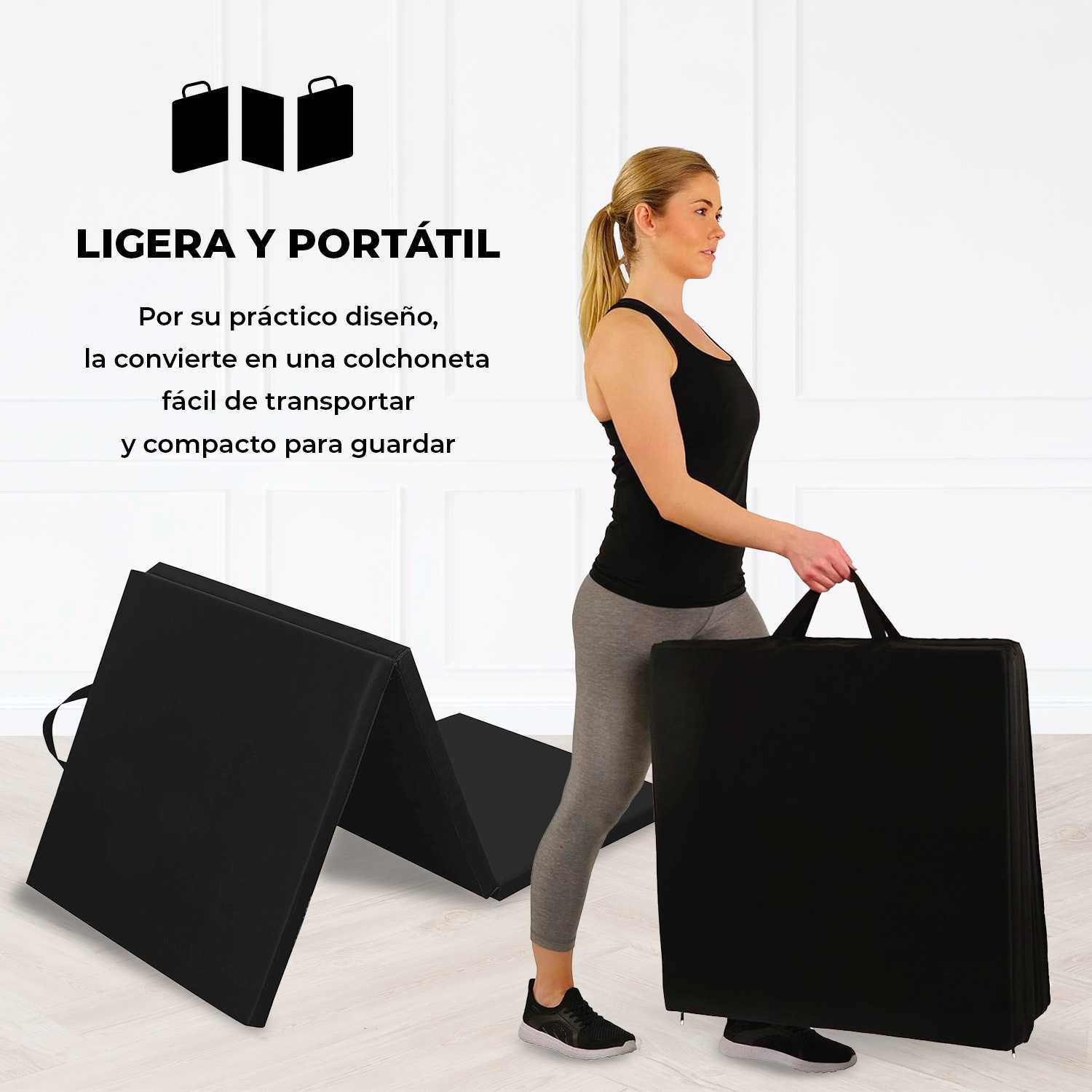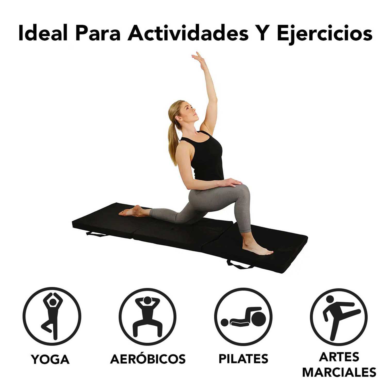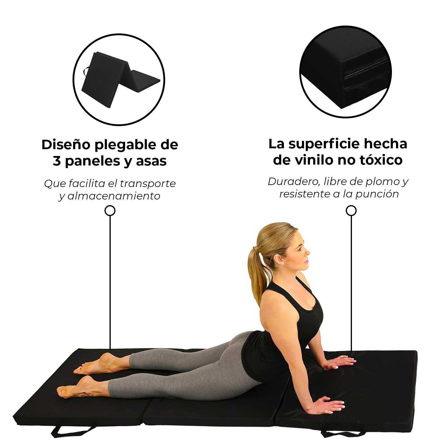 La Colchoneta Tríptica es perfecta para actividades como yoga, aeróbicos, pilates, artes marciales y más. Su diseño plegable de tres paneles con asas incorporadas facilita su transporte y almacenamiento.