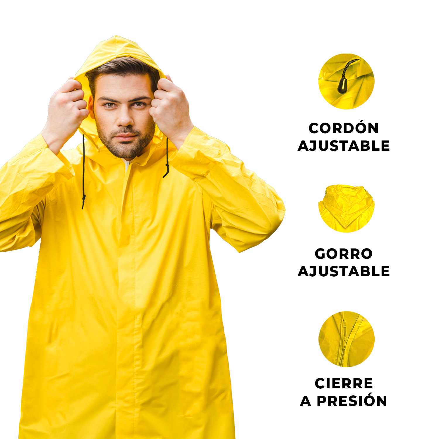 El Impermeable Gabardina es una prenda confeccionada para lluvia, reutilizable y de diseño unisex. Perfecto para mantenerte seco y cómodo en días lluviosos, gracias a su resistencia y funcionalidad.