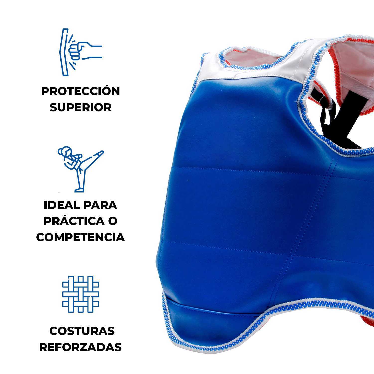 Los petos ofrecen protección integral para el pecho y costados, ideales para sesiones de práctica o combate. Su diseño versátil los hace aptos para disciplinas como karate, kung fu, judo y más.
