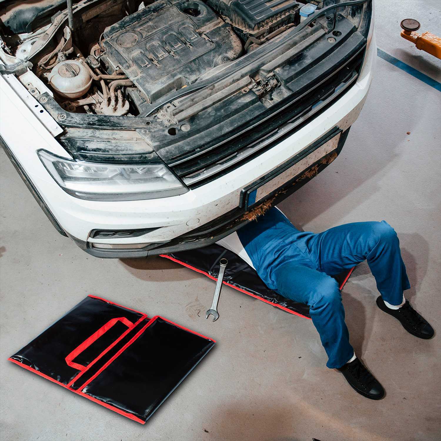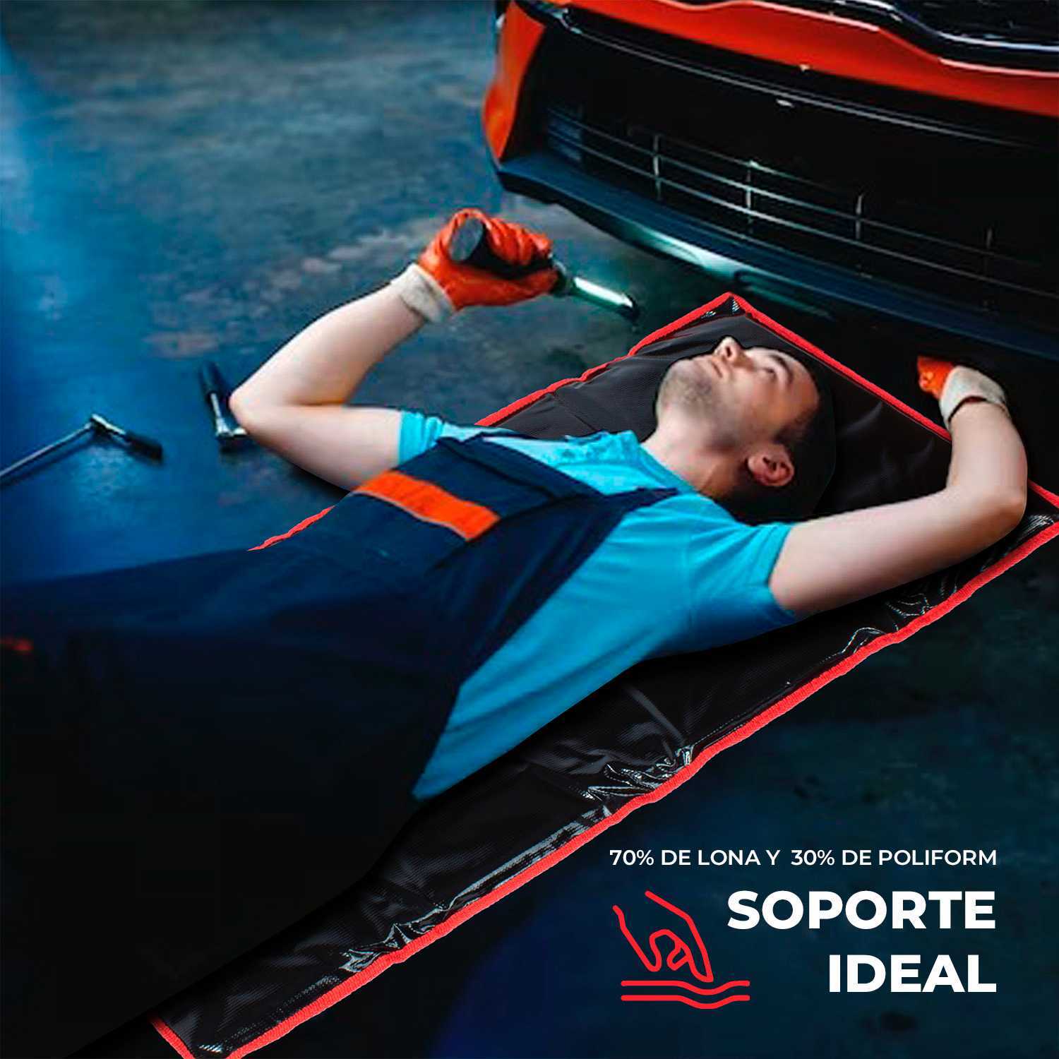 La Cama de Mecánico es plegable, fácil de transportar y almacenar, diseñada para brindar comodidad y soporte durante las tareas de mantenimiento. Su superficie es impermeable, lo que facilita su limpieza y uso en cualquier entorno.