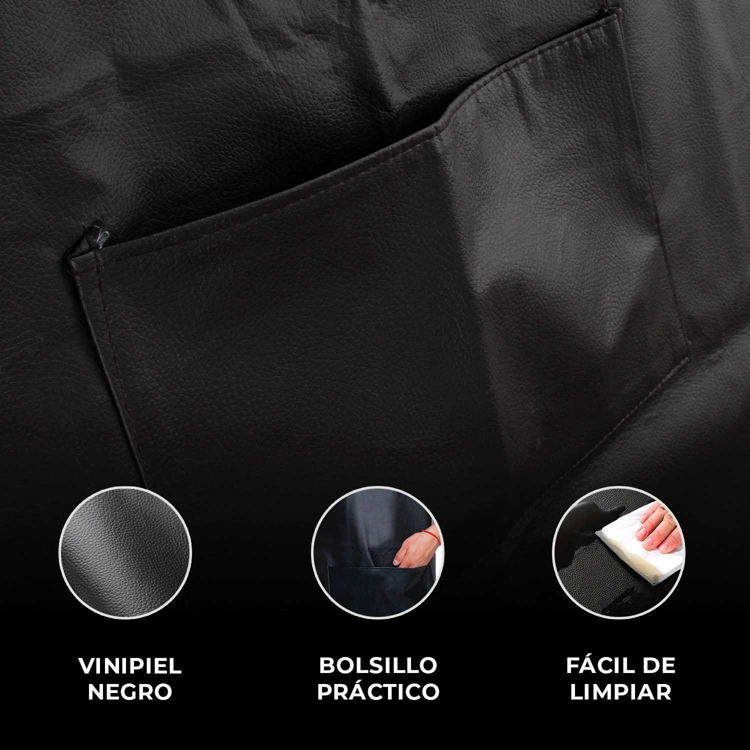 Este mandil vinipiel es ideal no solo para la cocina, sino también para actividades como jardinería, asados, limpieza, horneado, pintura o cualquier trabajo que requiera resistencia. Sus medidas de 55 x 70 cm brindan amplia cobertura y comodidad.